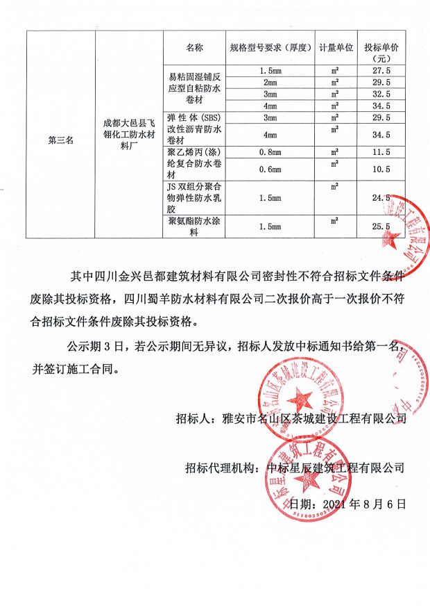 名山區體育中心維修維護項目材料采購項目招標結果公告...